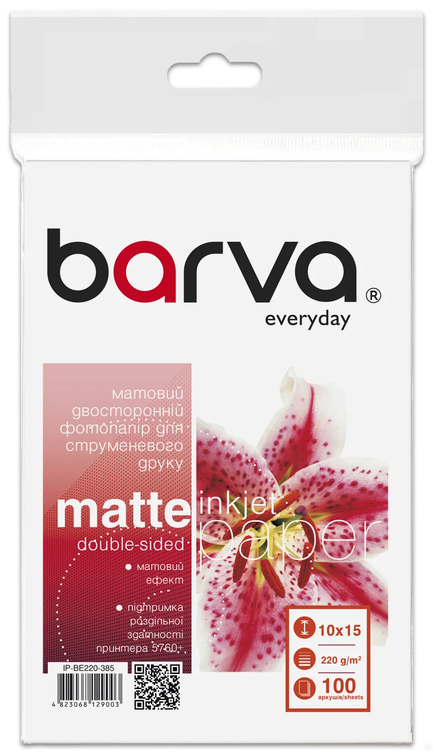 - Фотобумага матовая двусторонняя 220 г/м2, 10x15 см, 100 л Everyday Barva (IP-BE220-385)