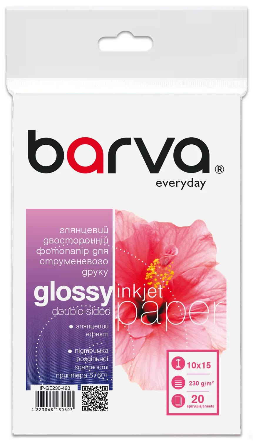 Фотобумага глянцевая двусторонняя 230 г/м2, 10x15 см, 20 л Everyday Barva (IP-GE230-423)