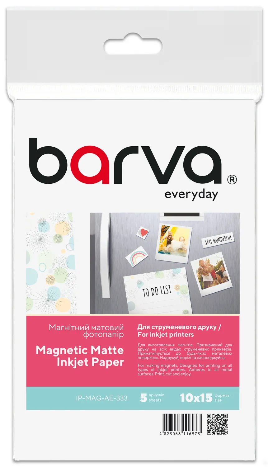 Фотобумага магнитная матовая 650 г/м2 (0.3 мм), 10x15 см, 5 л Everyday Barva (IP-MAG-AE-333) - гарантия качества