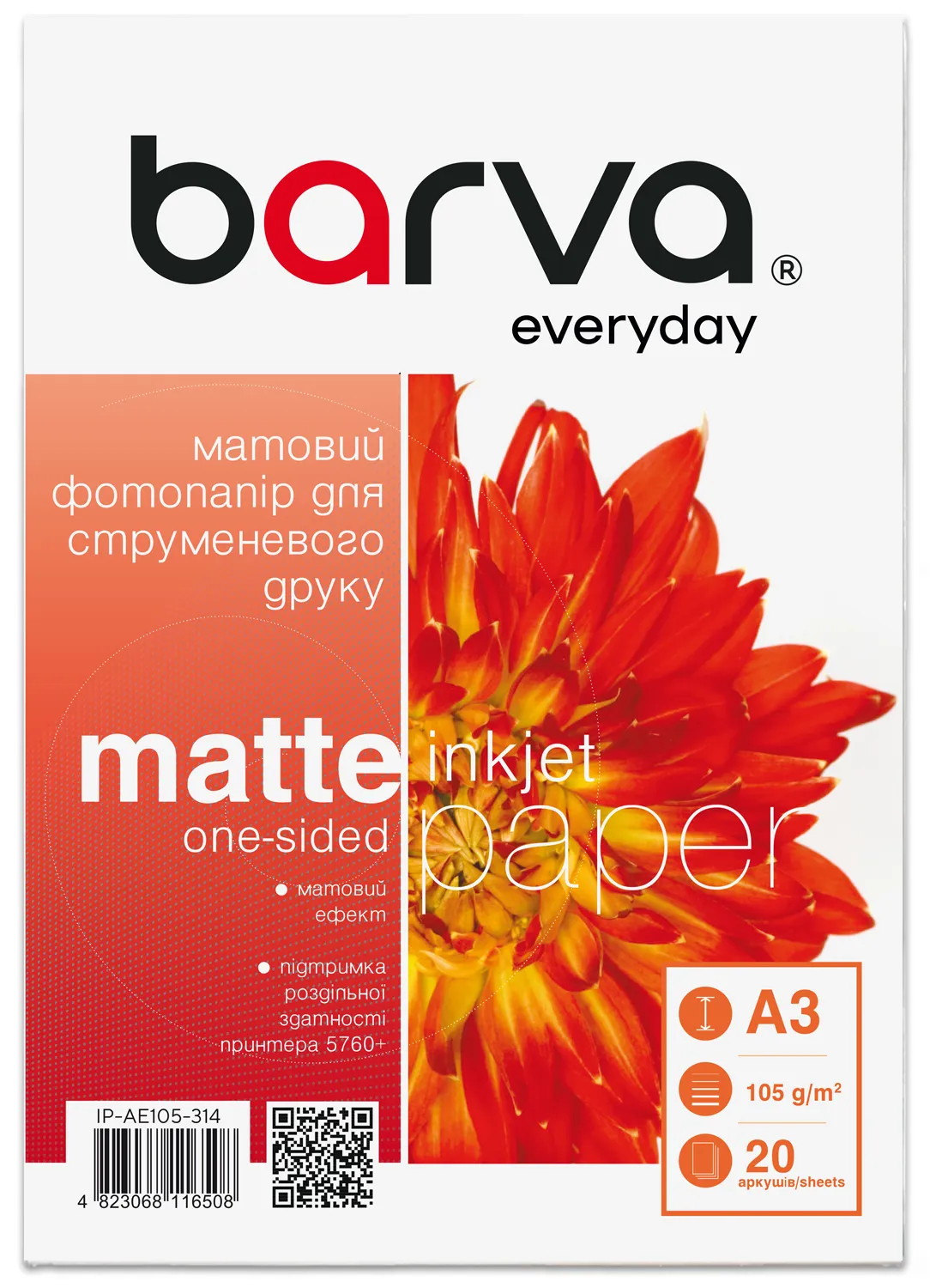 Фотобумага матовая 105 г/м2, A3, 20 л Everyday Barva (IP-AE105-314) - гарантия качества