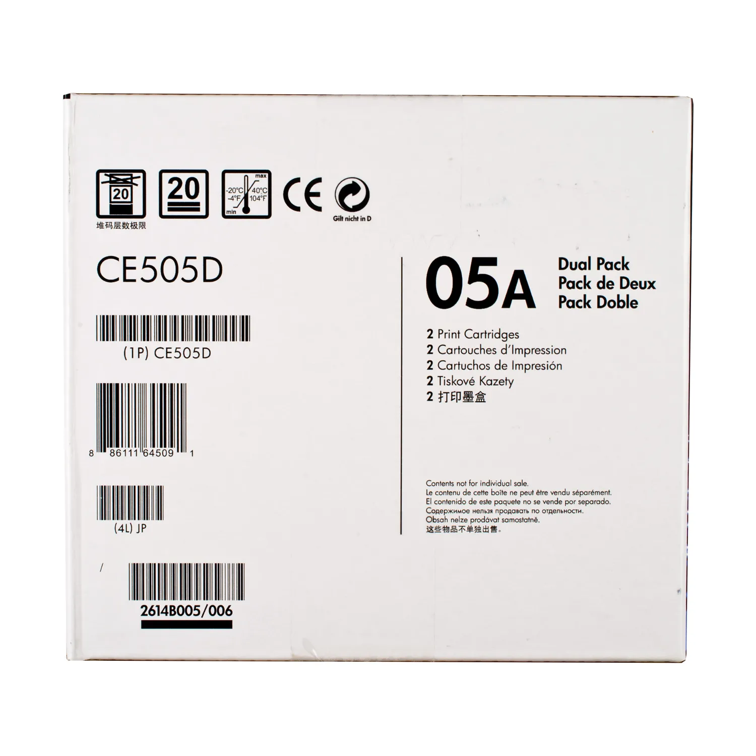 Оригинальный картридж CE505D, произведен компанией HP, которая гарантирует качественную печать на протяжении всего ресурса - 2*2300 страниц. Картридж 05A черный HP (CE505D) относится к группе оригинальных расходных материалов, единственным минусом которых является высокая стоимость.