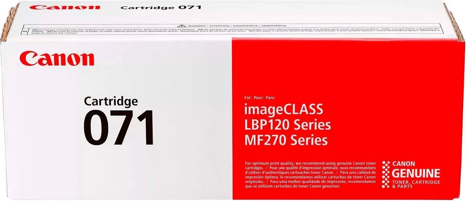 Оригинальный картридж разработан компанией Canon, что является гарантией высокого качества и обеспечивает стабильную работу на протяжении всего ресурса – страниц. Картридж 071 Canon (5645C001/5645C002) относится к группе оригинальных расходных материалов, единственным минусом которых является высокая стоимость.