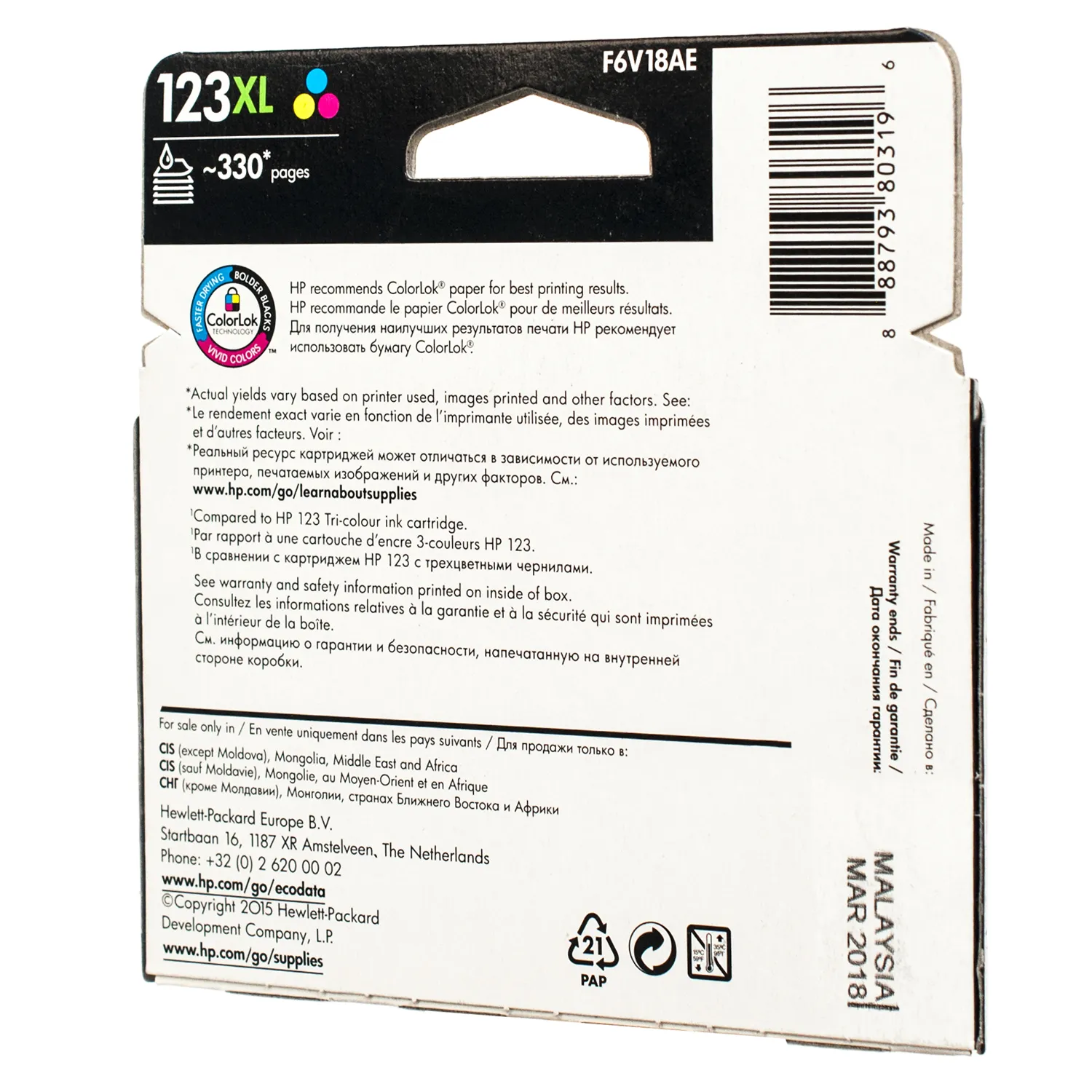 Картридж №123XL цветной HP (F6V18AE) описание: