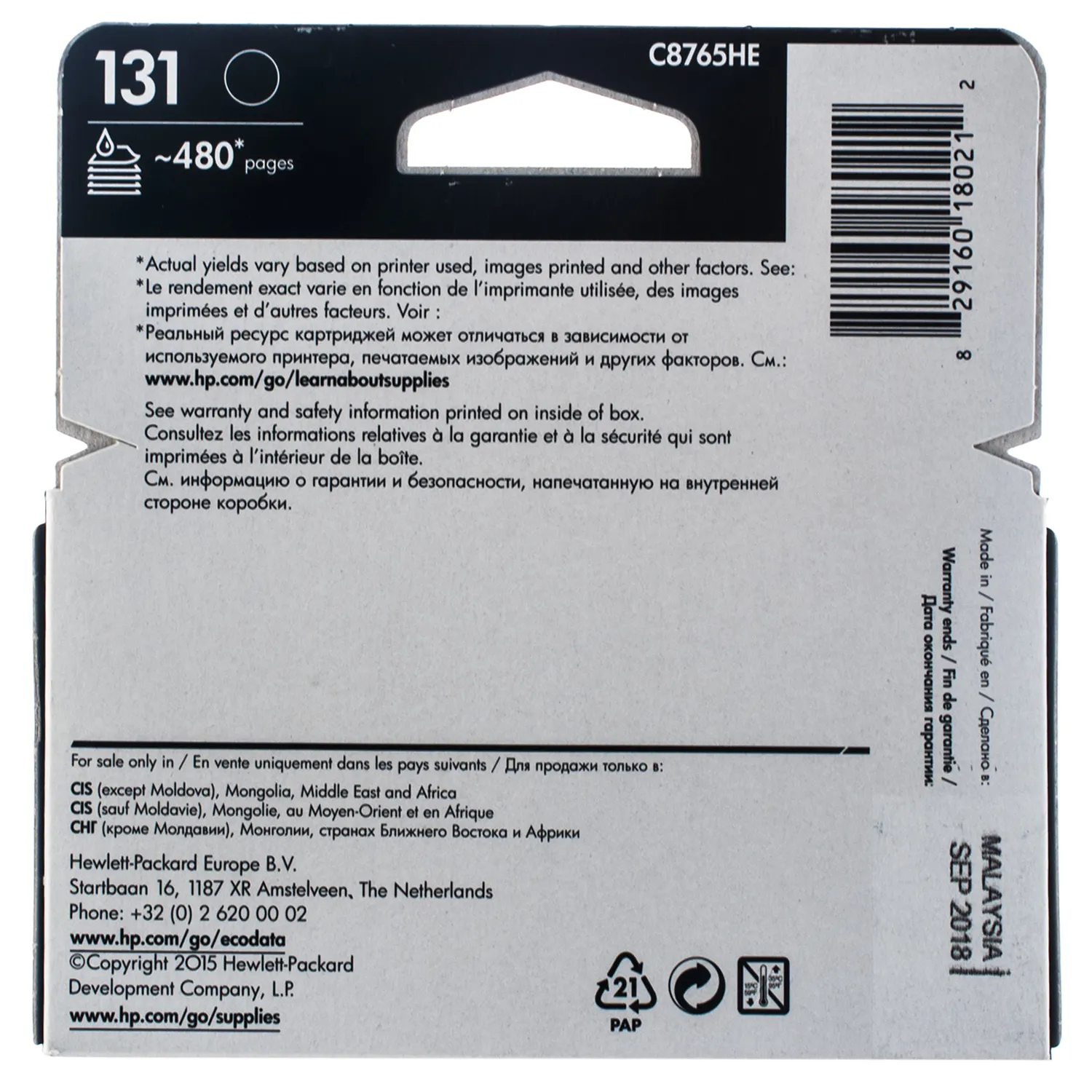 Картридж №131 черный HP (C8765HE) описание: