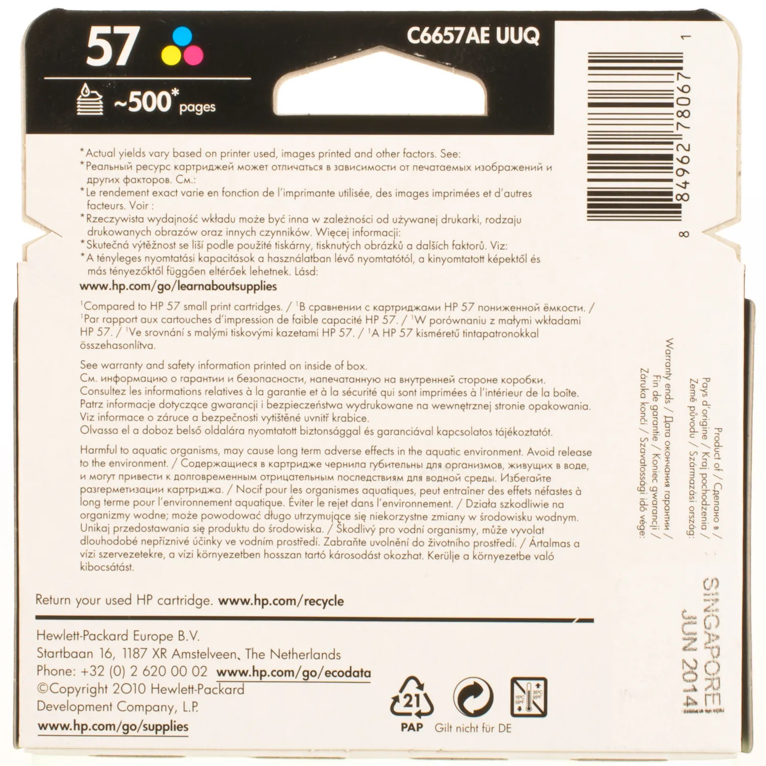 Струйный картридж C6657A HP имеет ресурс – 500 страниц.
