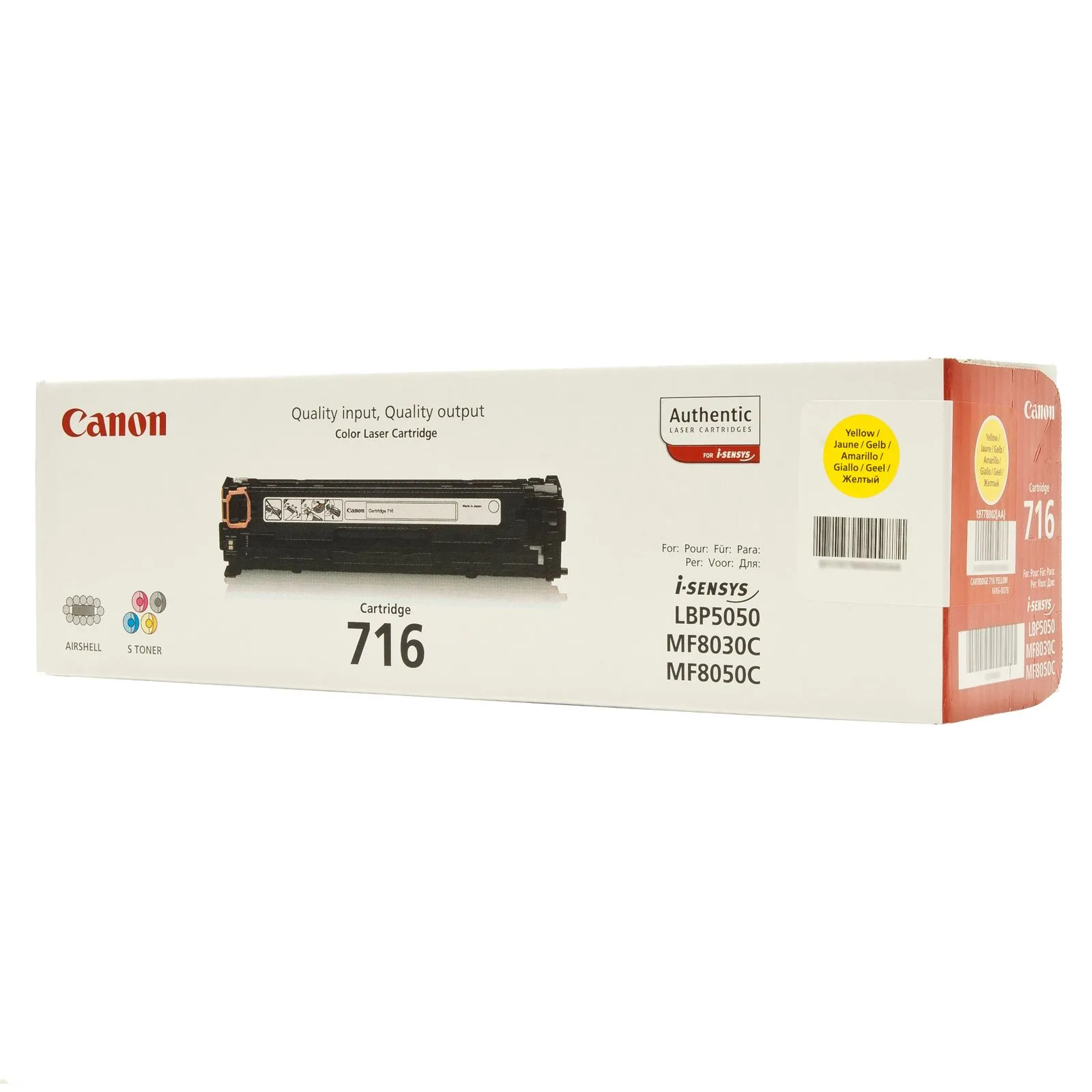 Оригинальный картридж 716-Y разработан компанией Canon, что является гарантией высокого качества и обеспечивает стабильную работу на протяжении всего ресурса – 1500 страниц. Картридж 716 желтый Canon (1977B002) относится к группе оригинальных расходных материалов, единственным минусом которых является высокая стоимость.