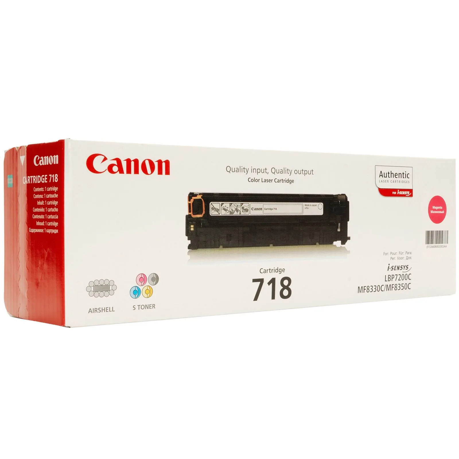 Оригинальный картридж 718-M разработан компанией Canon, что является гарантией высокого качества и обеспечивает стабильную работу на протяжении всего ресурса – 2900 страниц. Картридж 718 пурпурный Canon (2660B002) относится к группе оригинальных расходных материалов, единственным минусом которых является высокая стоимость.