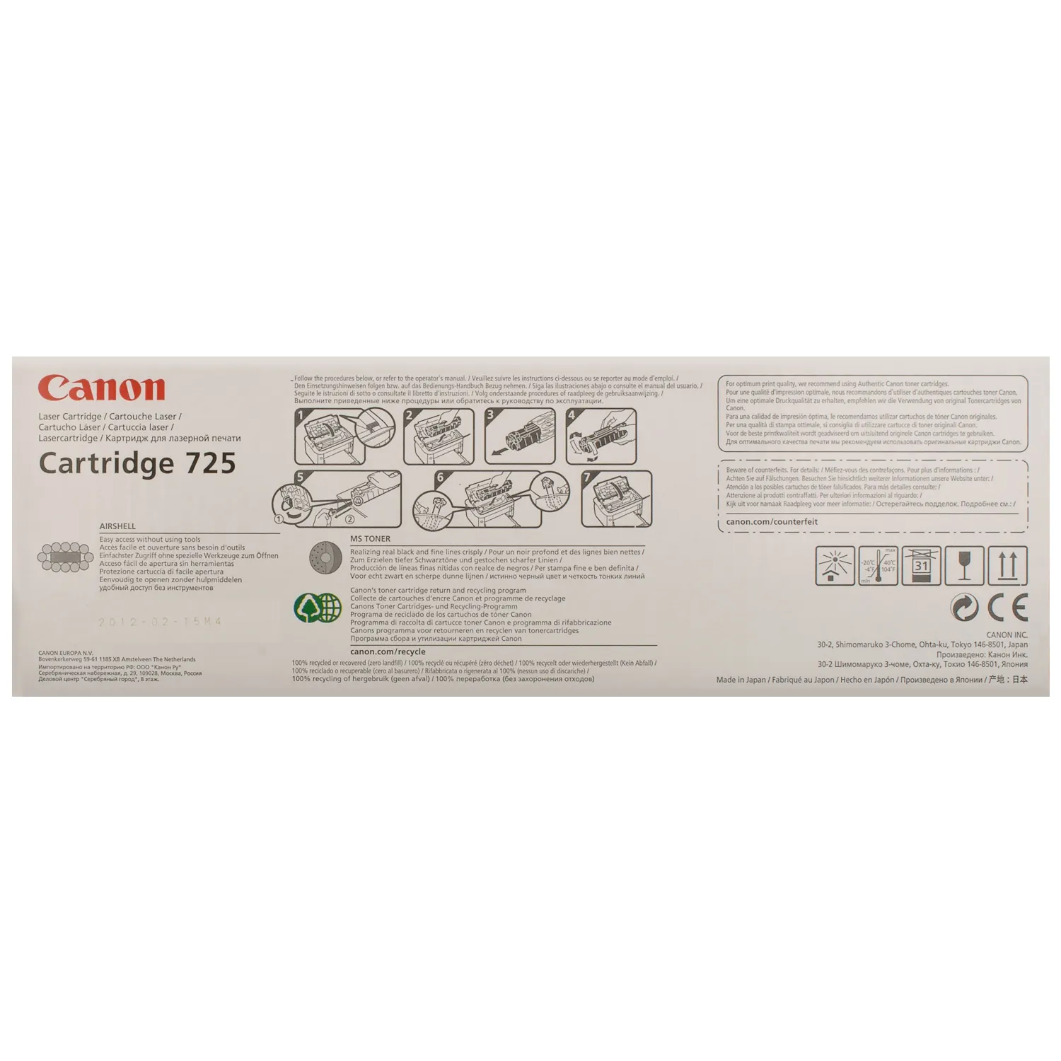 Оригинальный картридж 725 разработан компанией Canon, что является гарантией высокого качества и обеспечивает стабильную работу на протяжении всего ресурса – 1600 страниц. Картридж 725 Canon (3484B002) относится к группе оригинальных расходных материалов, единственным минусом которых является высокая стоимость.