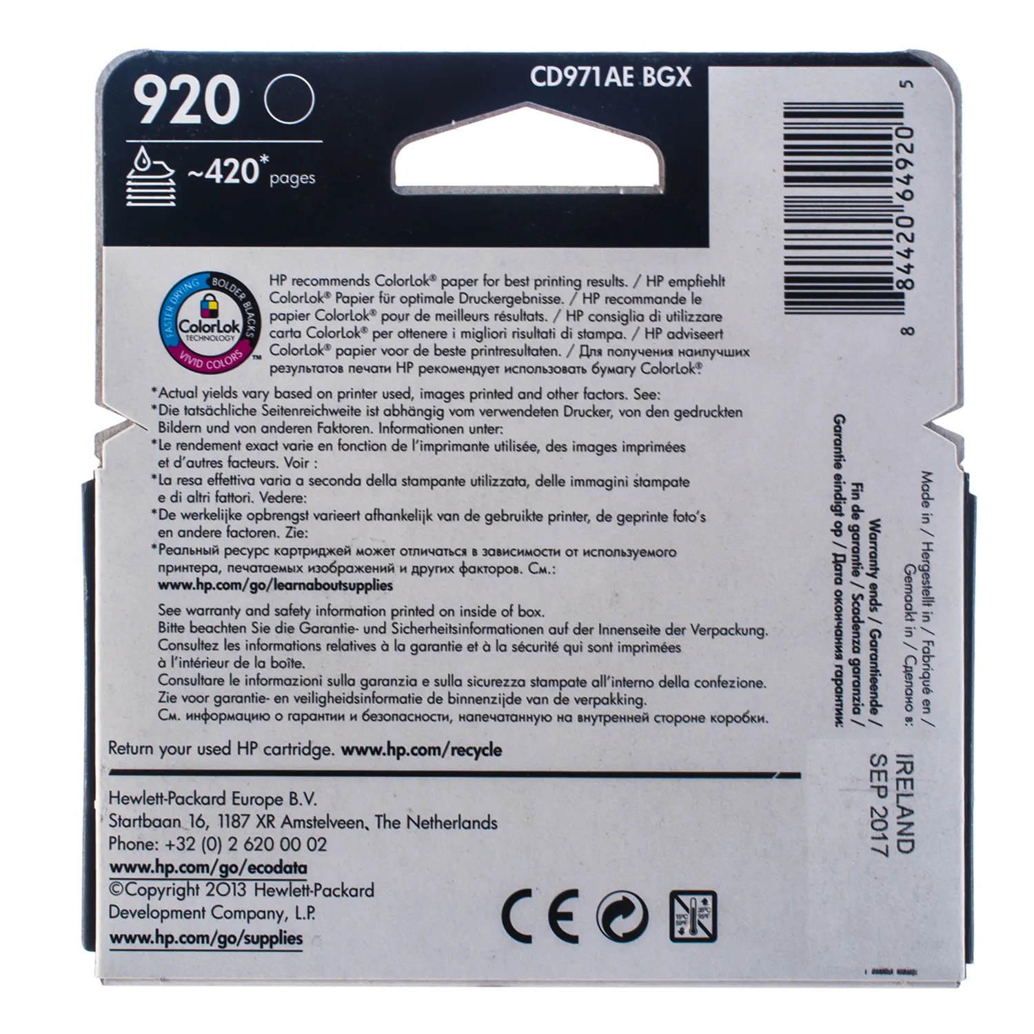 Картридж №920 420 стр, черный HP (CD971AE) описание: