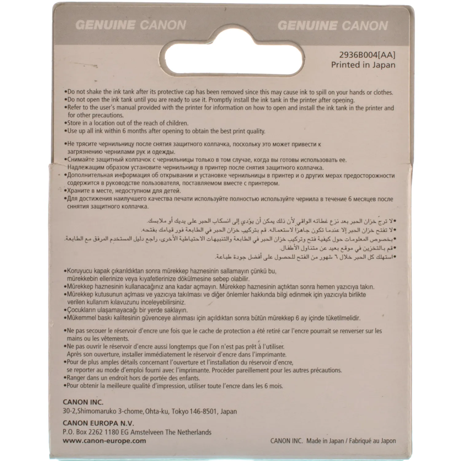 Некоторые виды пластиковой упаковки мультикомплектов могут не иметь голограммы, в таком случае необходимо обратить внимание на изображение логотипа Canon, оно не должно быть размытым или нечетким и соответствовать изображению на официальном сайте ТМ Canon.
