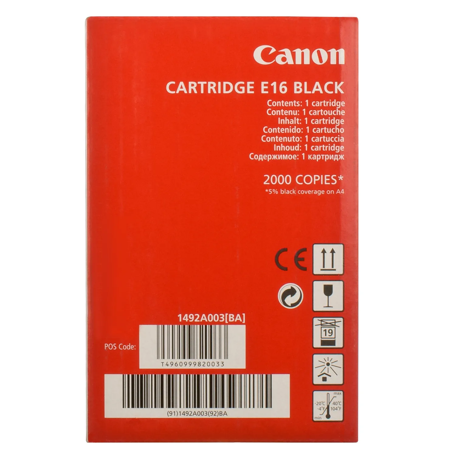 Оригинальный картридж E16 разработан компанией Canon, что является гарантией высокого качества и обеспечивает стабильную работу на протяжении всего ресурса – 2000 страниц. Картридж E16 Canon (1492A003) относится к группе оригинальных расходных материалов, единственным минусом которых является высокая стоимость.
