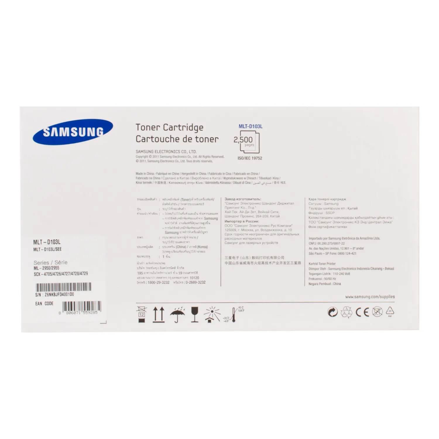 Ресурс картриджа MLT-D103L Samsung составляет 2500 страниц.
