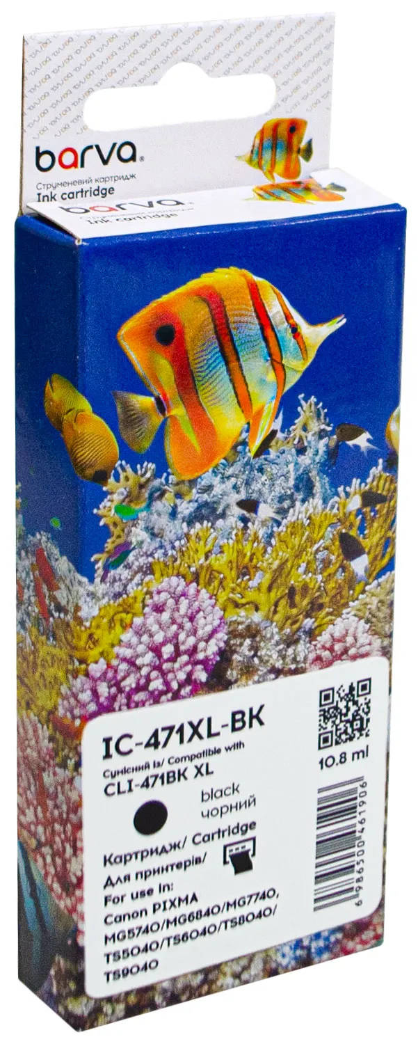 - Картридж совместимый Canon CLI-471BK XL (0346C001) 810 стр, черный Barva (IC-471XL-BK)