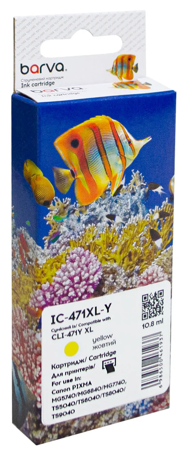 Картридж совместимый Canon CLI-471Y XL (0349C001) 715 стр, желтый Barva (IC-471XL-Y) подходит для печати: