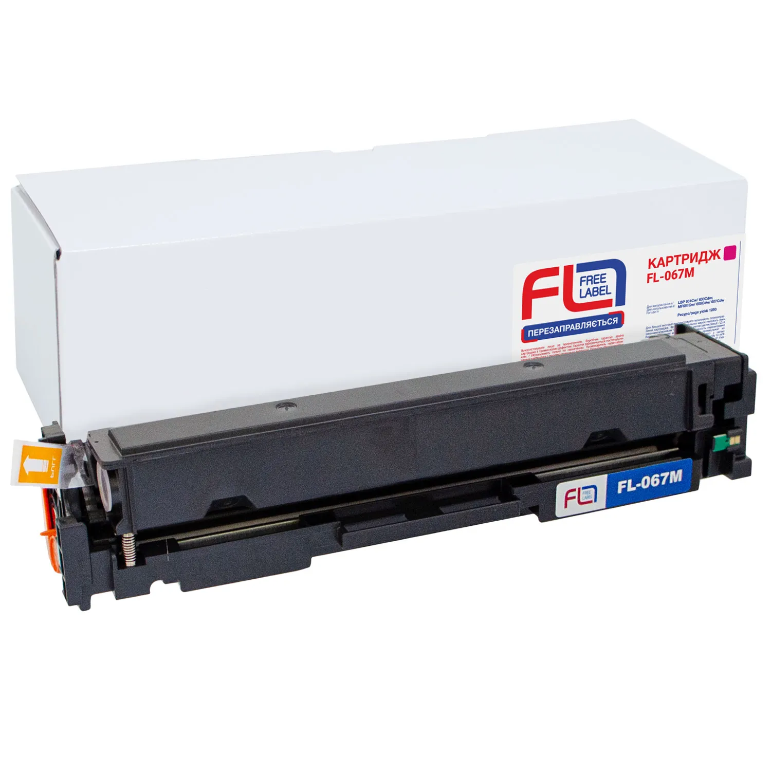 Ресурс совместимого картриджа 067M Free Label составляет 1250 страниц, что соответствует ресурсу аналогичного оригинального картриджа.