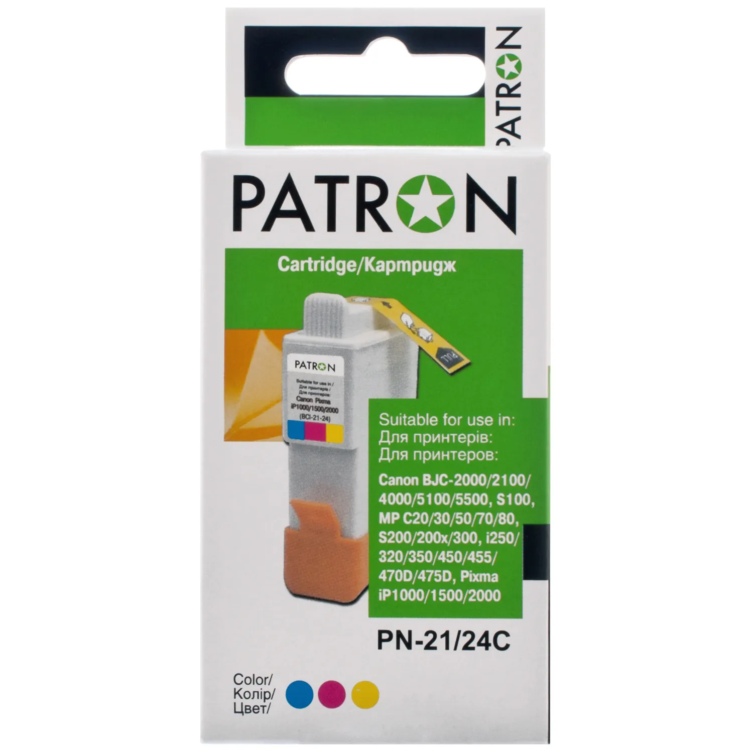 Картридж совместимый Canon BCI-21/BCI-24 (0955A002/6882A002) 170 стр, трехцветный Patron (PN-21/24C) - заказывайте на сайте patronservice.ua