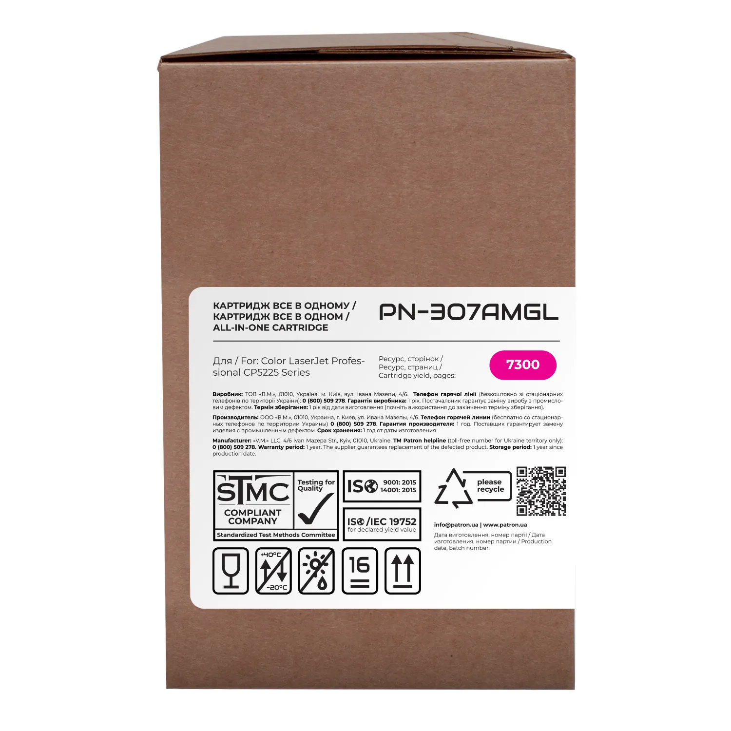 Мы позаботились о том, чтобы упаковка картриджа была не только экологичной, функциональной, имела минимально возможные физические размеры, но и содержала всю необходимую информацию. На зеленой этикетке находится информация о продукте, его совместимости с печатающими устройствами, номер партии, дата изготовления, контакты производителя, а также номер телефона бесплатной горячей линии для украинских потребителей.