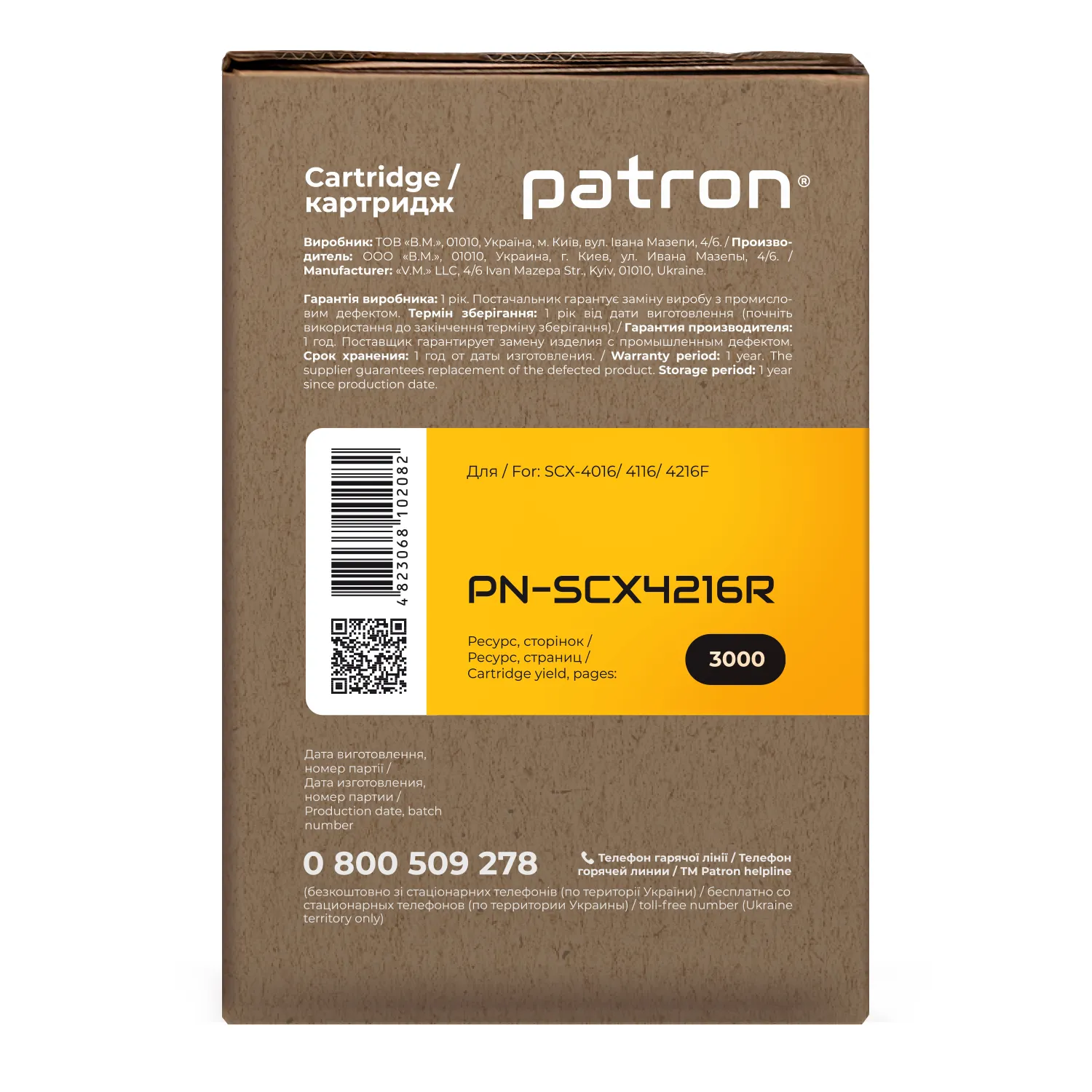 Мы позаботились о том, чтобы упаковка картриджа была не только экологичной, функциональной, имела минимально возможные физические размеры, но и содержала всю необходимую информацию. На ярко-оранжевой этикетке находится информация о продукте, его совместимости с печатающими устройствами, номер партии, дата изготовления, контакты производителя, а также номер телефона бесплатной горячей линии для украинских потребителей.