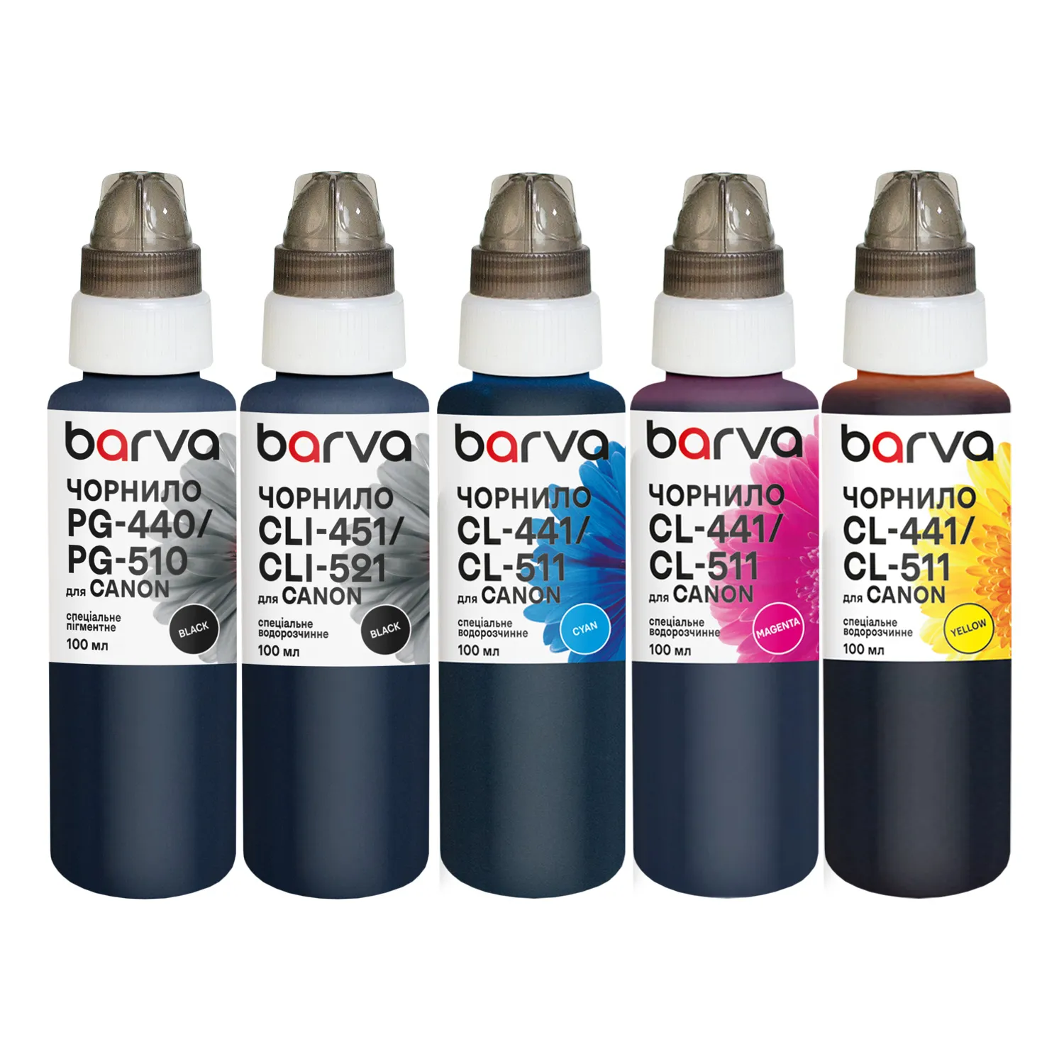 Комплект чернил для Canon PGI-5PGBK + CLI-8BK/C/M/Y специальные 5x100 мл, пигментные/водорастворимые, PGBK/BK/C/M/Y Barva (CPGI5-100-2MP)