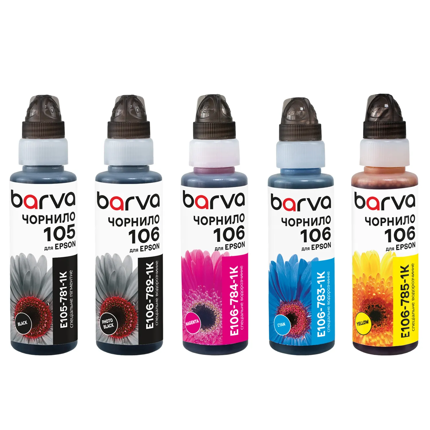 Вы можете купить Комплект чернил совместимых для Epson 105/106 специальные 5x100 мл, флакон OneKey (1K), пигментные/водорастворимые, BK/PB/C/M/Y Barva (E105-1K-MP) в нашем интернет-магазине с доставкой по Киеву и всей Украине.