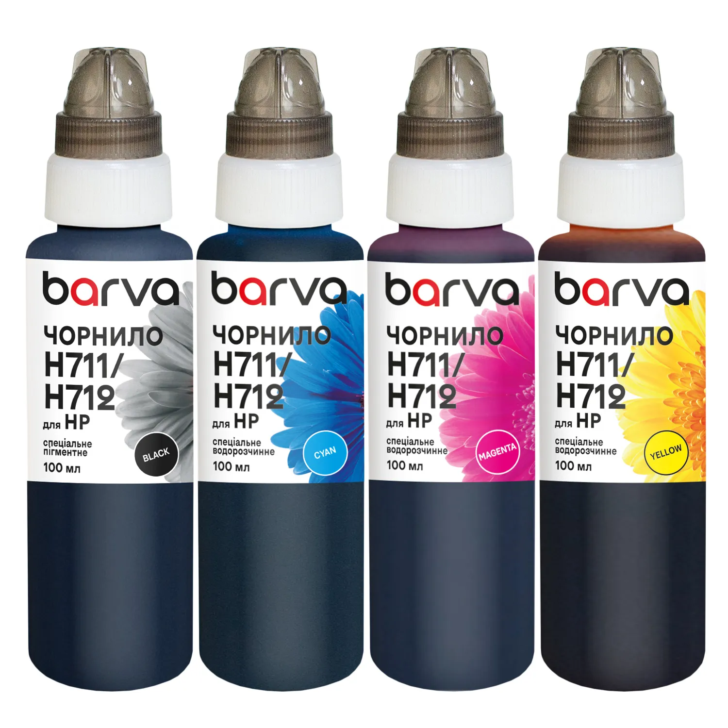 Комплект чернил для HP 711/712 специальные 4x100 мл, пигментные/водорастворимые, BP/C/M/Y Barva (H711-100-MP) - быстрая и удобная доставка