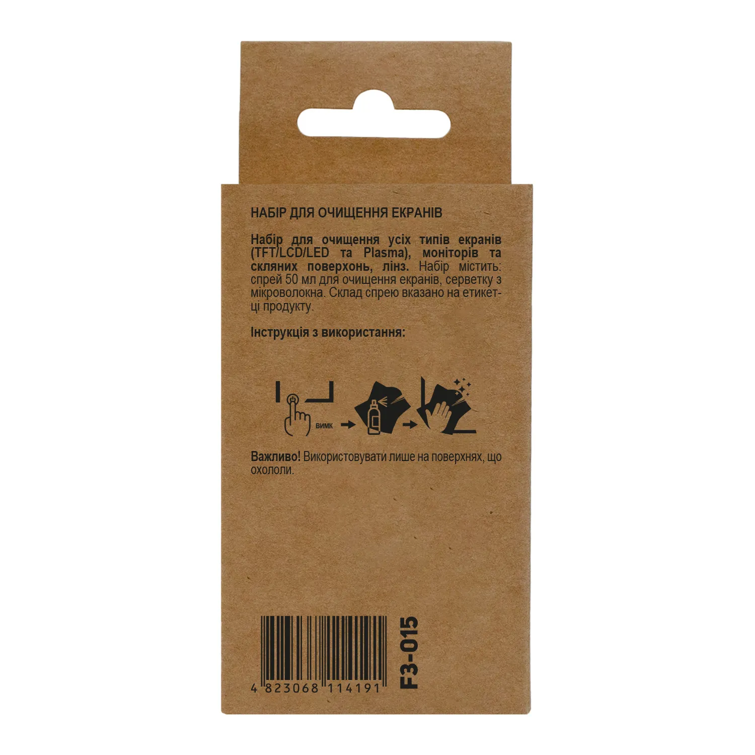 Набор для очистки экранов бесспиртовой 2в1 (Спрей 120 мл + Салфетка) Patron (F3-022)