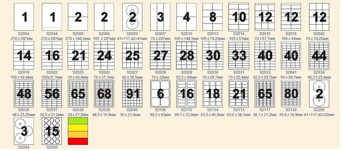 Наклейки адресные самоклеющиеся 21 на листе А4, 100 л Sapro (S2113) - большой ассортимент