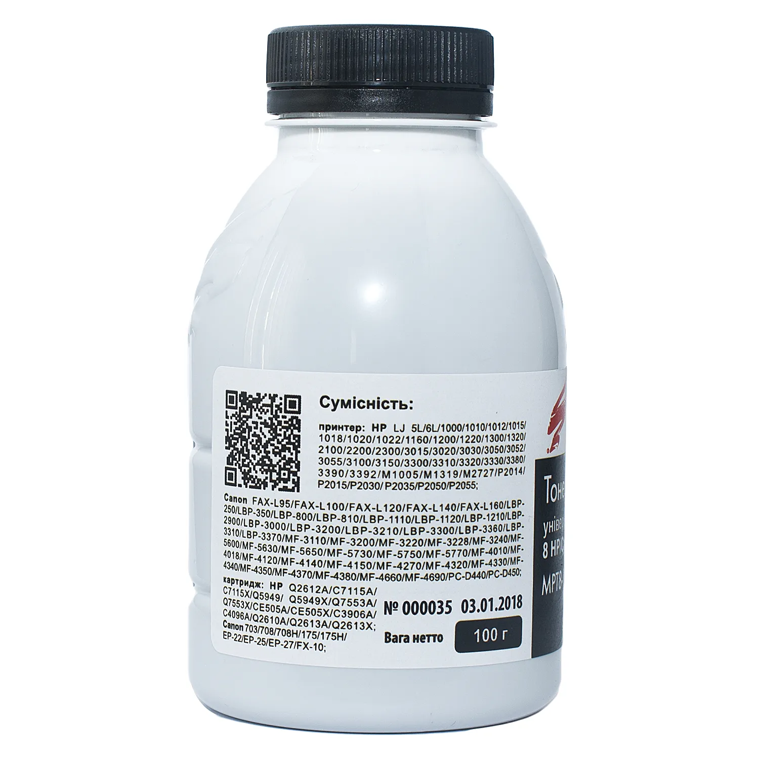Данный тонер для принтера HP представлен в фасовке 100 г. Тип упаковки – Флакон.