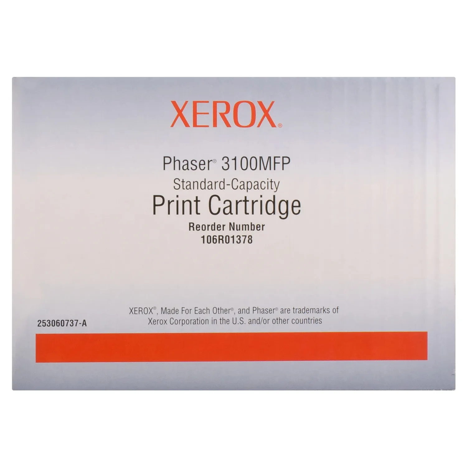 Картридж Xerox 106R01378 разработан и изготовлен производителем печатающего устройства, потому является идеальным выбором для безупречного качества отпечатков. Можно с уверенностью рассчитывать, что оригинальный картридж для лазерного принтера Xerox будет безотказно работать на протяжении всего ресурса – 3000 страниц. Тонер-картридж 106R01378 Xerox (Phaser 3100MFP) относится к группе оригинальных расходных материалов, единственным минусом которых является высокая стоимость.
