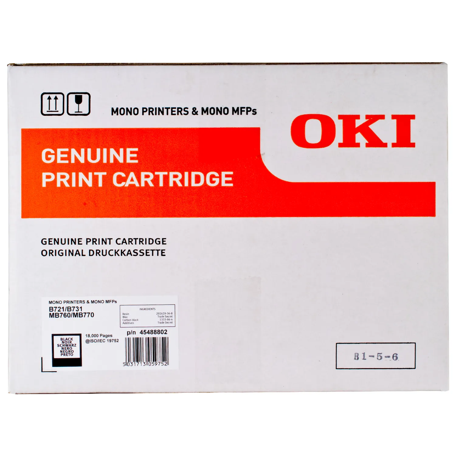 Ресурс тонер - картриджа MB760-18K Oki составляет 18000 страниц.