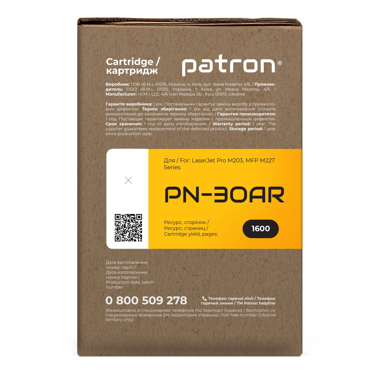 Украинская компания ТОВ «В. М.» производит картриджи Patron Extra с 2004 года. Это реальный продукт, произведенный в нашей стране.