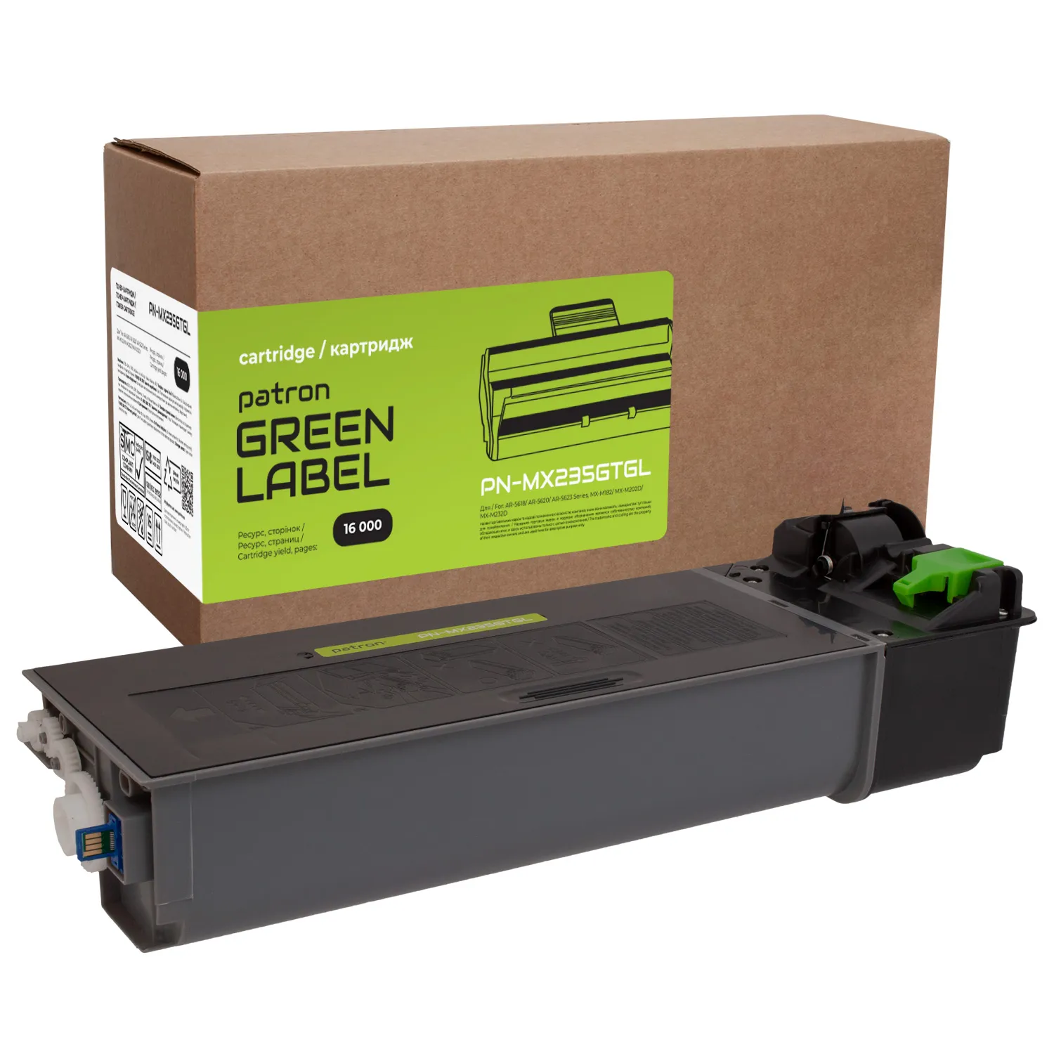 Тонер-картридж совместимый Sharp MX-235GT Green Label Patron (PN-MX235GTGL) оптимальное решение для лазерных принтеров и МФУ.