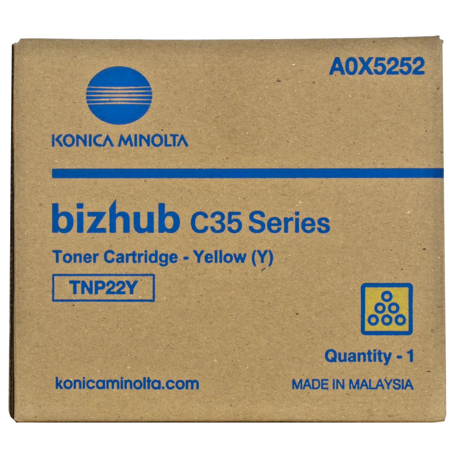 Картридж A0X5252 разработан и изготовлен компанией Konica Minolta, потому является идеальным выбором для безупречного качества отпечатков. Можно с уверенностью рассчитывать, что оригинальный картридж для лазерного принтера Konica Minolta будет безотказно работать на протяжении всего ресурса – 6000 страниц. Тонер-картридж TNP-22Y желтый Konica Minolta (A0X5252) относится к группе оригинальных расходных материалов, единственным минусом которых является высокая стоимость.