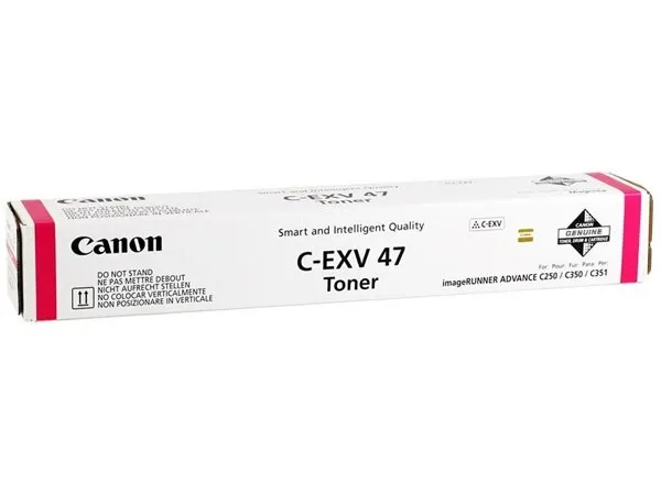 Оригінальний тонер - картридж C-EXV47-M було розроблено компанією Canon, що є гарантією високої якості і забезпечує стабільну роботу протягом всього ресурсу – 21500 сторінок. Тонер-картридж C-EXV47 пурпуровий Canon (8518B002) відноситься до групи оригінальних витратних матеріалів, єдиним мінусом яких є висока вартість..