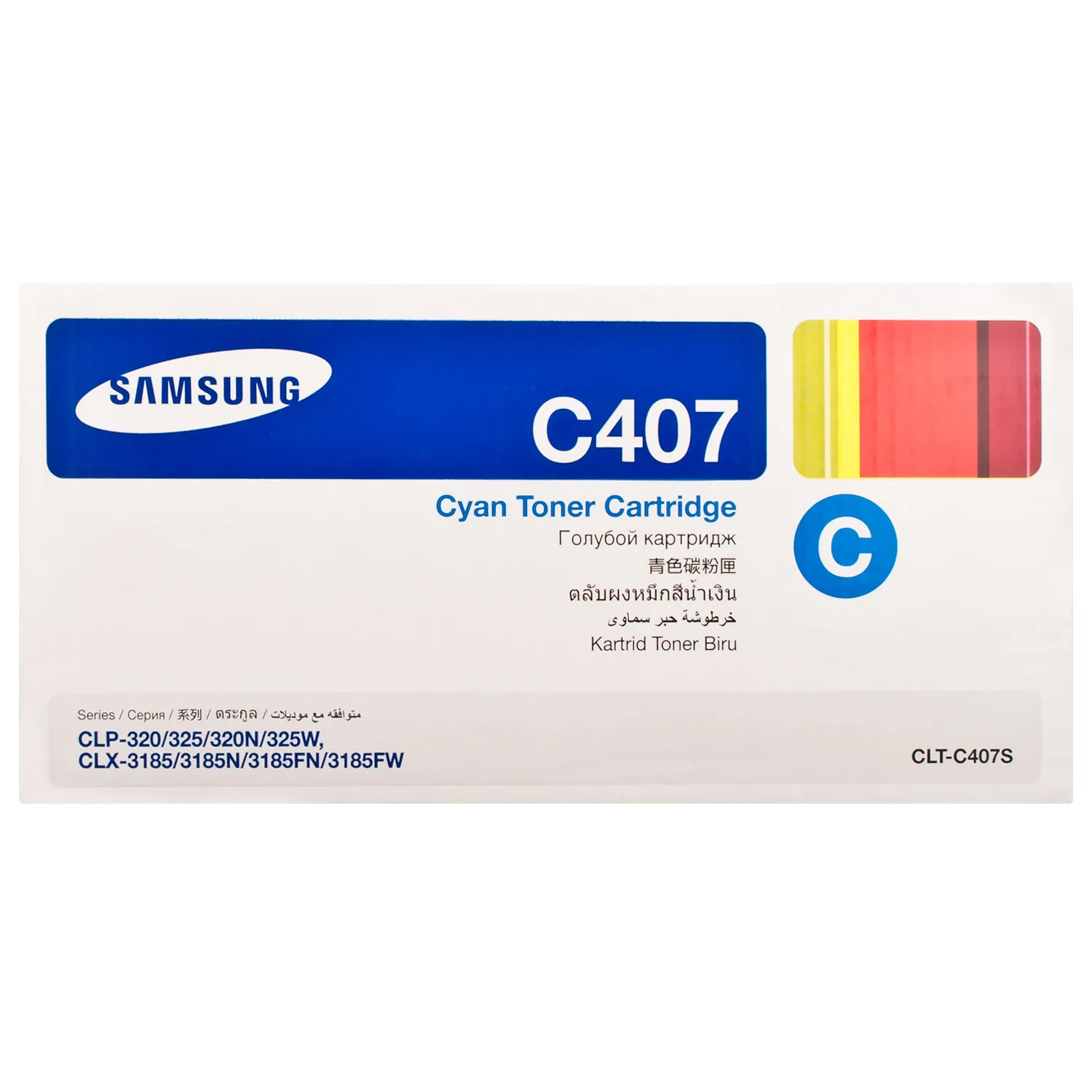 Ресурс картриджа CLT-407-CY Samsung становить 1000 сторінок.