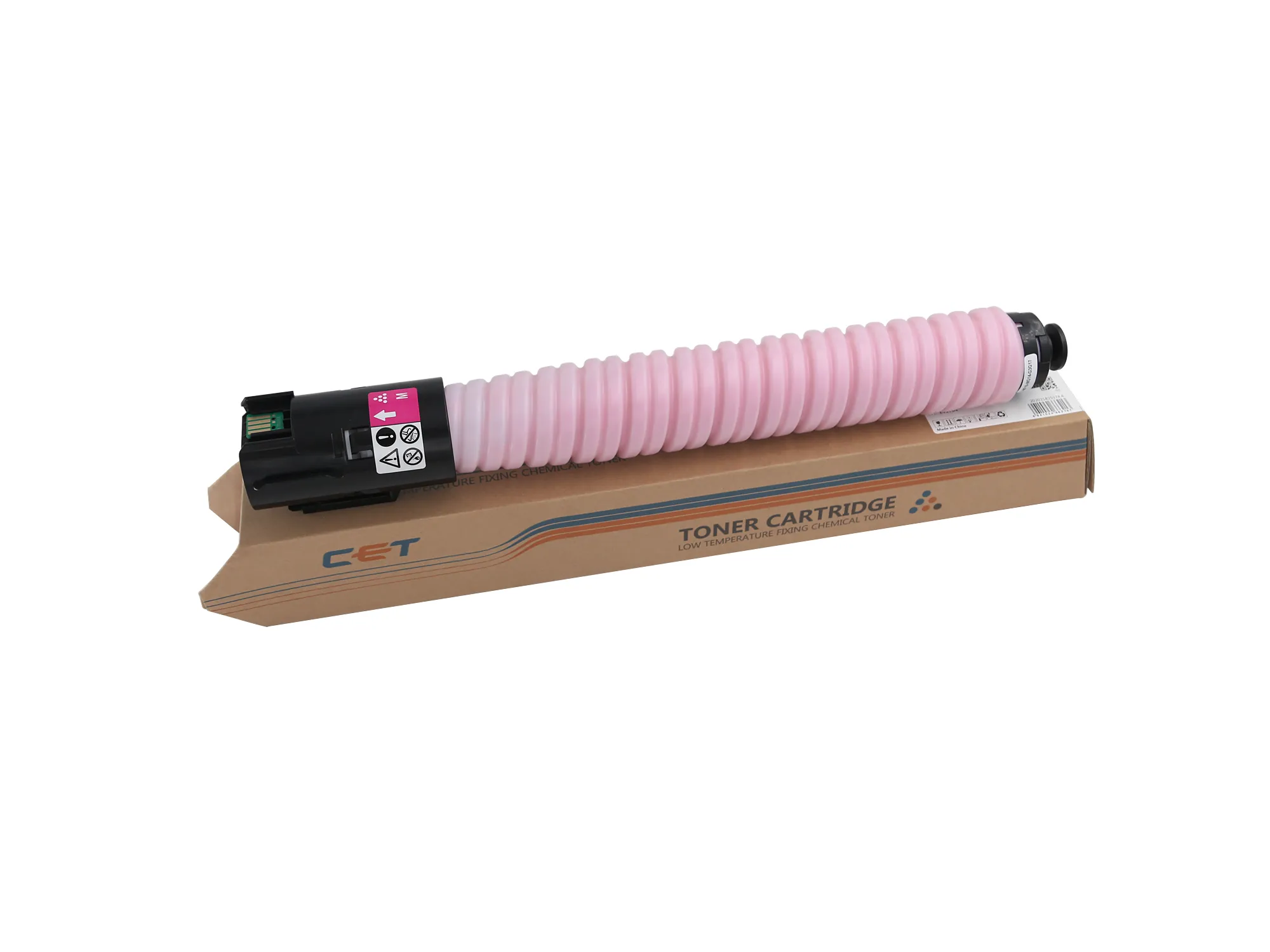 Витратні матеріали CET відносяться до роздільної системи – тонер-картридж (тонер-туба) + драм-картридж - в таких пристроях фотобарабан знаходиться в окремому блоці та замінюється окремо від тонер-картриджа, що є більш економним варіантом.