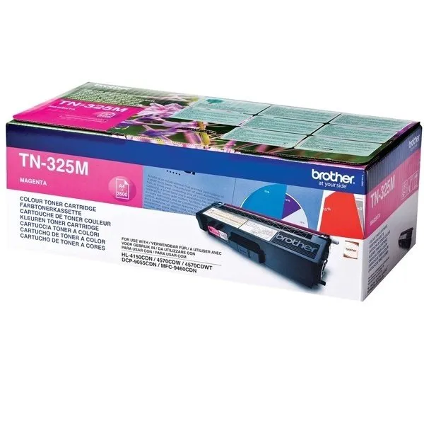Тонер - картридж brother TN-325-M було розроблено та виготовлено виробником друкуючого пристрою, тому є ідеальним вибором для бездоганної якості відбитків. Можна із впевненістю розраховувати, що оригінальний тонер – картридж для лазерного принтера Brother буде безвідмовно працювати протягом всього ресурсу – 3500 сторінок. Тонер-картридж TN325M пурпуровий Brother (TN325M) відноситься до групи оригінальних витратних матеріалів, єдиним мінусом яких є висока вартість.