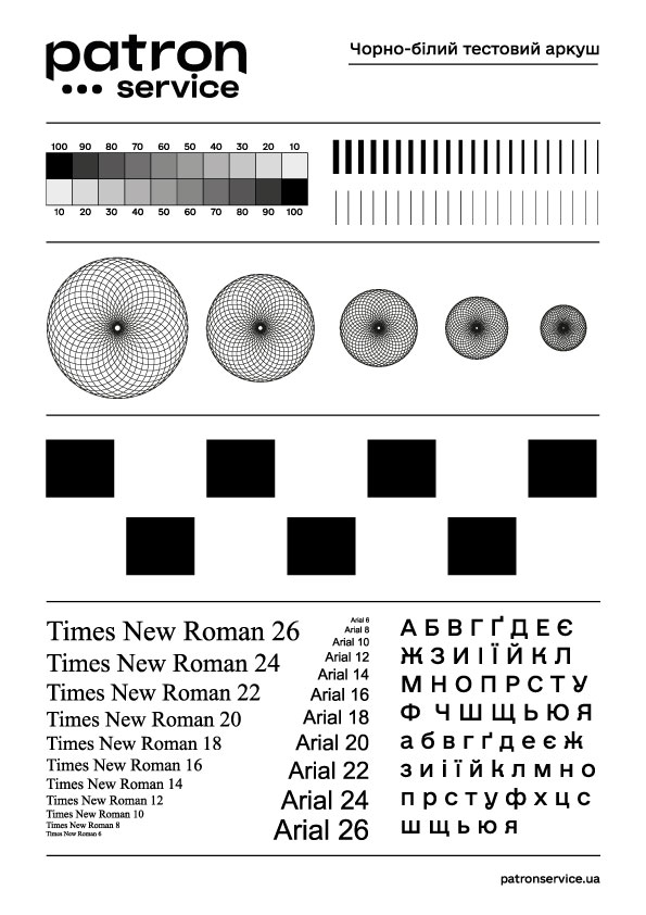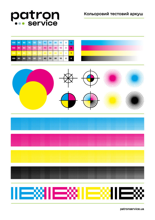 В четверте: Уважно роздивіться тестовий відбиток заправленого картриджу. Якщо для Вас важливий текст – він має читатись від шостого кегля та вище. Якщо Ви періодично друкуєте графіку – роздивіться передачу напівтонів отриманого зображення. У разі заправки кольорових картриджів – радимо також звернути увагу на правильне перенесення кольорів. Приклад тестових сторінок буде наведено нижче.