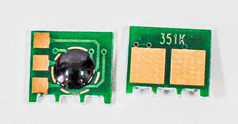 Чіп - це не велика за розміром мікросхема, в яку вшита інформація про ресурс самого картриджа, забезпечений функцією обміну даними з принтером. Простіше кажучи, завдяки чіпу апарат може порахувати кількість надрукованих сторінок. У момент, коли лічильник сторінок підійшов до кінця, ви побачите попередження про те, що картридж закінчився і його необхідно замінити, навіть якщо в бункері картриджа залишився невикористаний тонер.
