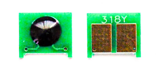 Чіп - це не велика за розміром мікросхема, в яку вшита інформація про ресурс самого картриджа, забезпечений функцією обміну даними з принтером. Простіше кажучи, завдяки чіпу апарат може порахувати кількість надрукованих сторінок. У момент, коли лічильник сторінок підійшов до кінця, ви побачите попередження про те, що картридж закінчився і його необхідно замінити, навіть якщо в бункері картриджа залишився невикористаний тонер.