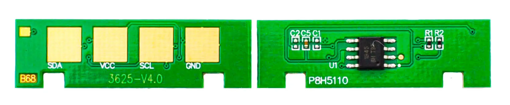 Чіп - це не велика за розміром мікросхема, в яку вшита інформація про ресурс самого картриджа, забезпечений функцією обміну даними з принтером. Простіше кажучи, завдяки чіпу апарат може порахувати кількість надрукованих сторінок. У момент, коли лічильник сторінок підійшов до кінця, ви побачите попередження про те, що картридж закінчився і його необхідно замінити, навіть якщо в бункері картриджа залишився невикористаний тонер.