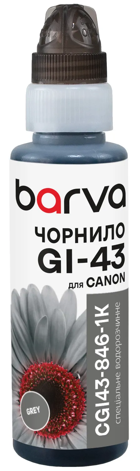 Чорнило для Canon GI-43 GY спеціальне 100 мл, флакон OneKey (1K), водорозчинне, сіре Barva (CGI43-846-1K) опис: