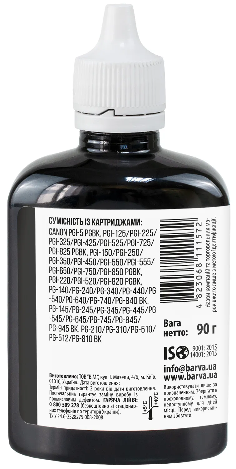 Чорнило сумісне для Canon PGI-520/PG-440/PG-510 спеціальне 90 г, пігментне, чорне Barva (C520-297) опис: