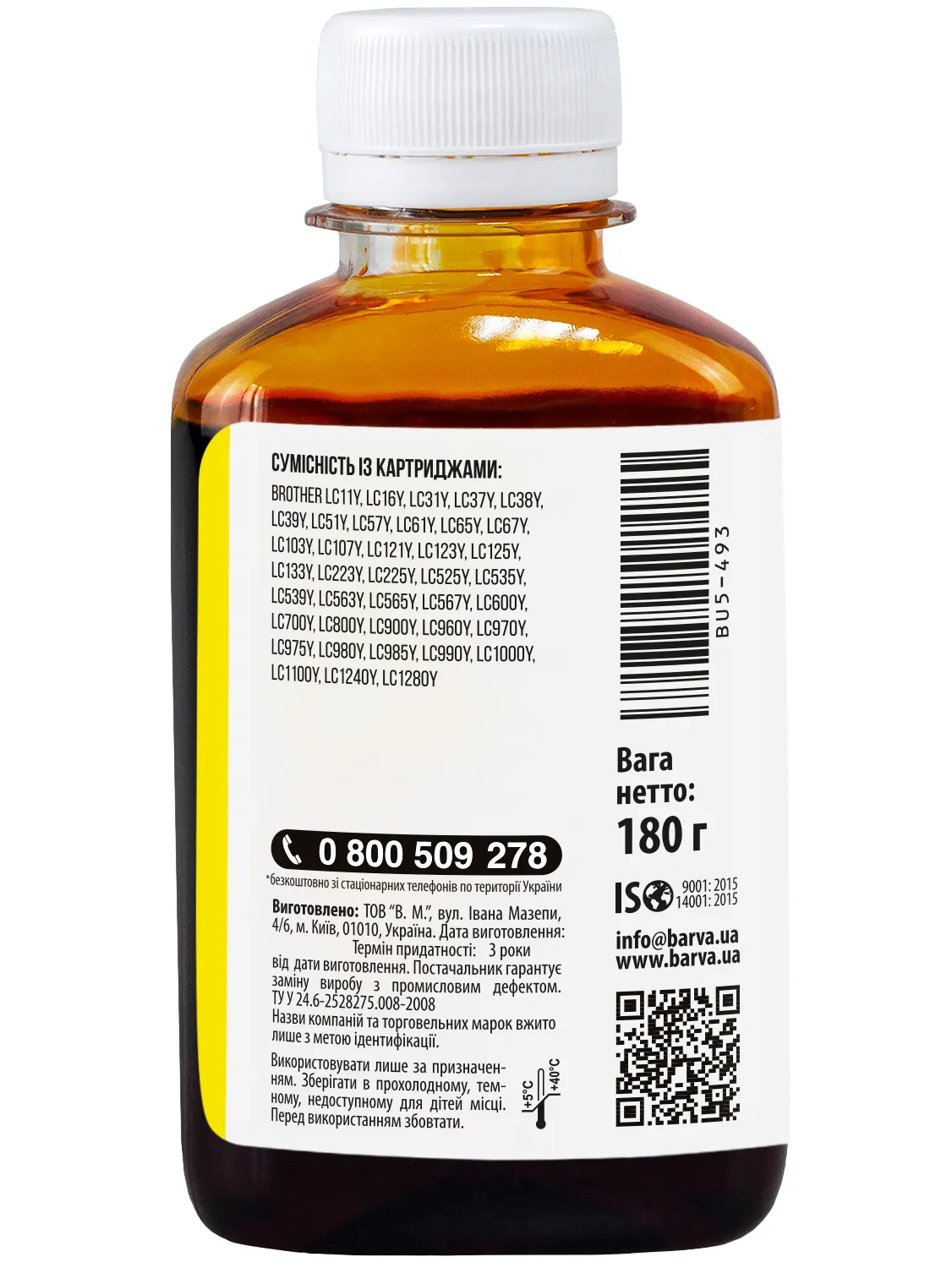 Чорнило для Brother універсальне №5 180 г, водорозчинне, жовте Barva (BU5-493) опис: