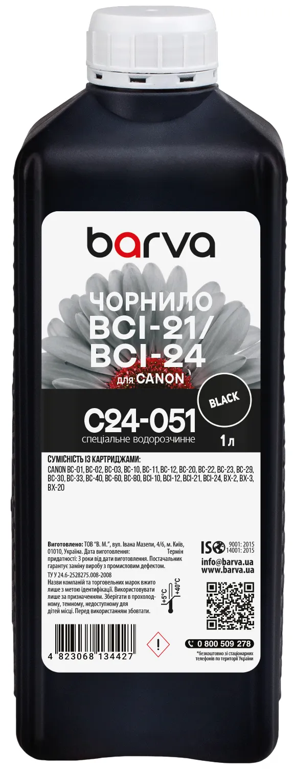 Чорнило для Canon BCI-21/BCI-24 спеціальне 1 л, водорозчинне, чорне Barva (C24-051) опис: