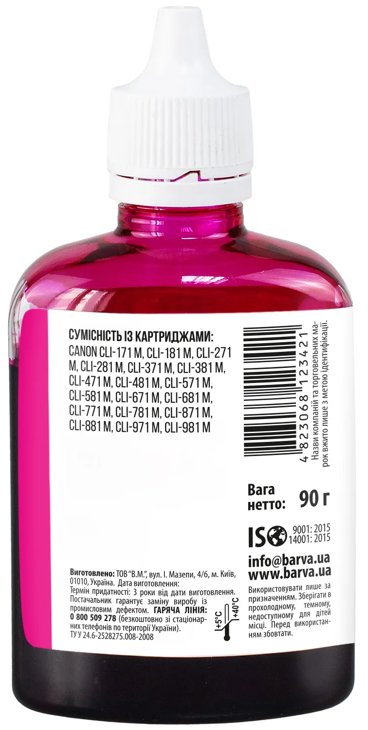 Чорнило сумісне для Canon CLI-471/CLI-481 M спеціальне 90 г, водорозчинне, пурпурове Barva (C471-555) опис: