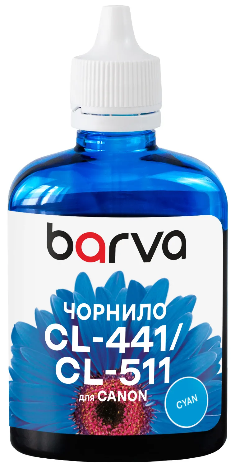 Більшість з нас чули, що на відміну від лазерної техніки, яка формує зображення за допомогою тонера, струменева техніка використовує для друку спеціальні чорнила (краска для принтерів). Чорнило сумісне для Canon CL-441/CLI-521/CL-511 спеціальне 90 г, водорозчинне, блакитне Barva (C521-286) використовується переважно для заправки ПЗК та СБПЧ. Заправка картриджу також можлива, для цього необхідно зняти носик та вилучити чорнила шприцом.