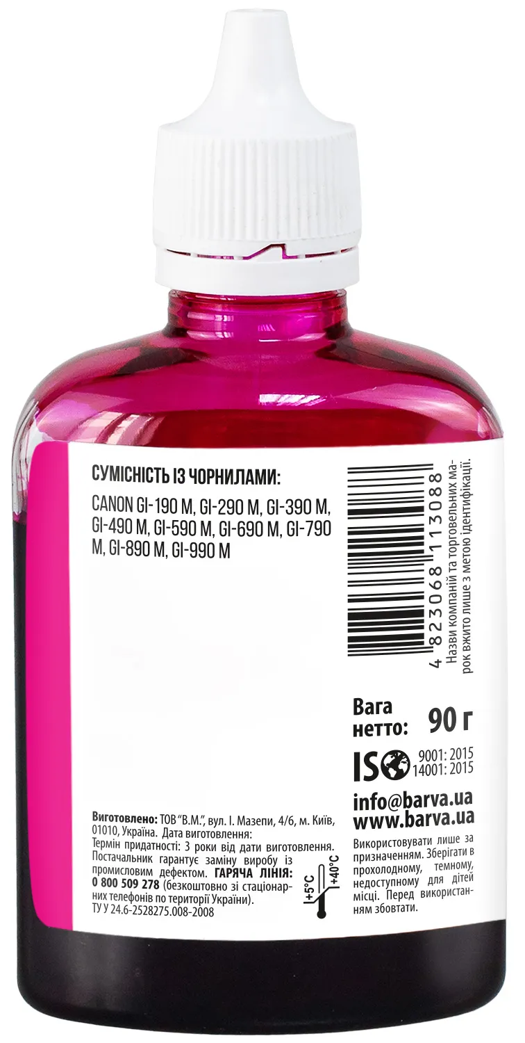 Чорнило сумісне для Canon GI-490 M спеціальне 90 г, водорозчинне, пурпурове Barva (G490-509) опис: