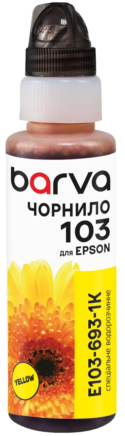Чорнило для Epson 103 Y спеціальні 100 мл, флакон OneKey (1K), водорозчинні, жовті Barva (E103-693-1K): гарантія якості