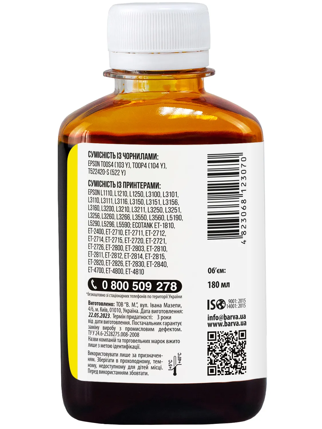 Дана фарба для принтера Epson Barva має фасовку – 180 мл: